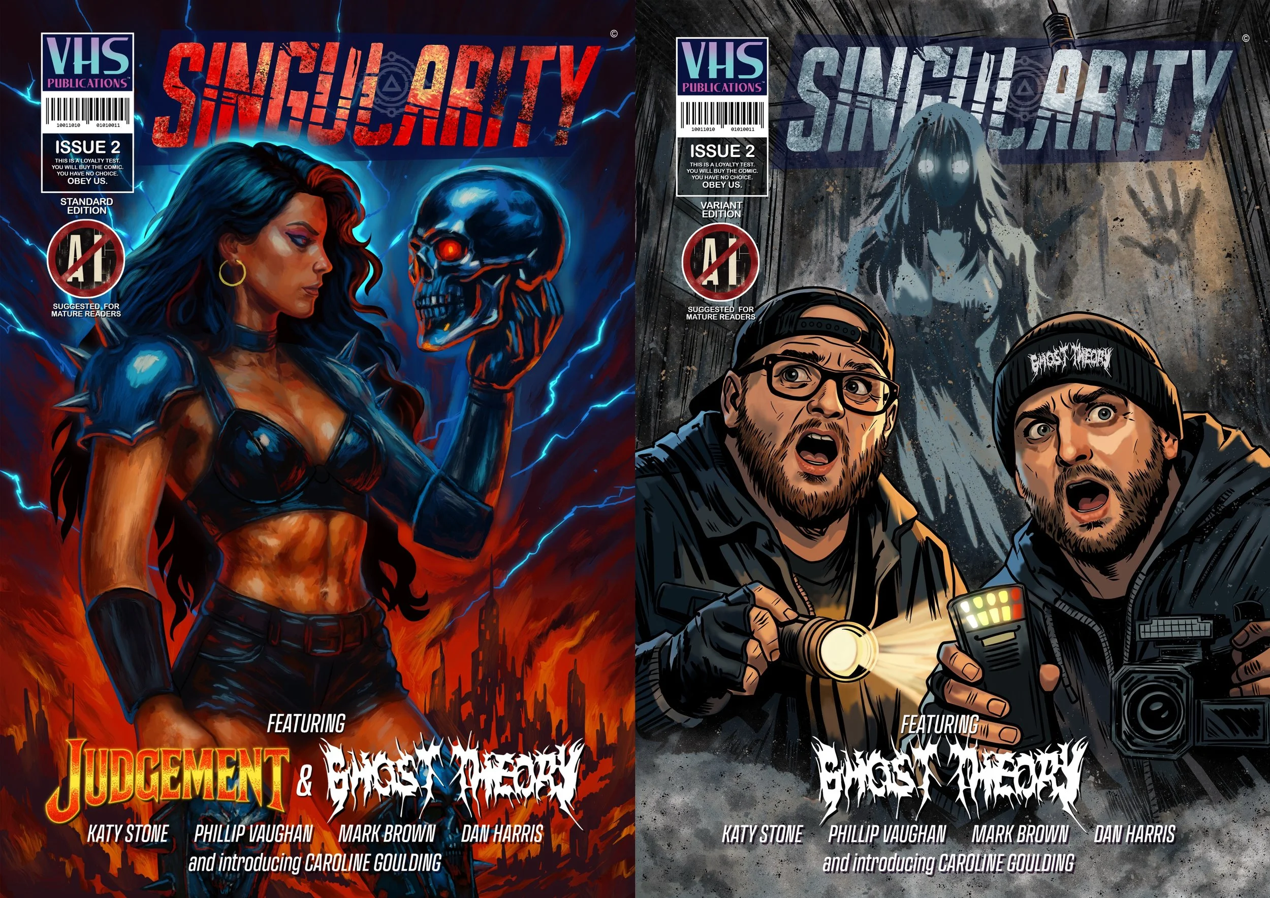Founded by Katy Stone and Phil Vaughan, VHS Productions exists to support and showcase bold, unsettling, and imaginative work from writers and artists working outside the mainstream. Each issue of Singularity features original stories exploring the darker edges of science, technology, society, and the human condition — from speculative biotech and artificial intelligence to psychological and cosmic horror.